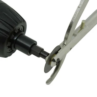 To use your manual ring cutter on an electric power tool you will need an arbor adapter. Hexagonal arbor screws onto the ring cutter blade with the nut then you can attach the ring cutter to a power tool for faster, easier cutting power. It’s important to remember that when using a power ring cutter not to squeeze the handle too much so the blade cannot move when power is turned on. Doing so will strip the threads of the arbor.Â