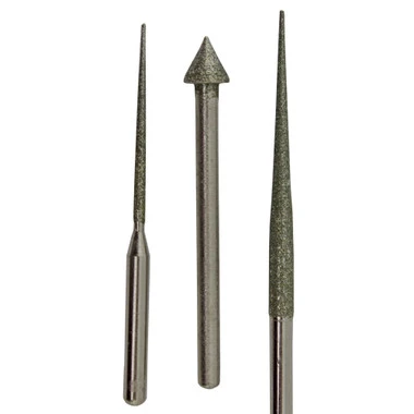 Includes three diamond coated points – 2 tapered, large and small, to smooth and enlarge the bead hole, plus one 45° edging point for rounding the edges to protect the bead cord. The points have diamond particles electroplated onto the metal surface for long life. Premium hardwood handle is supplied with two collets which can also be used to hold needle files, gravers, and drills.