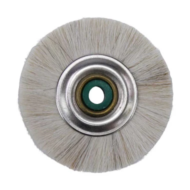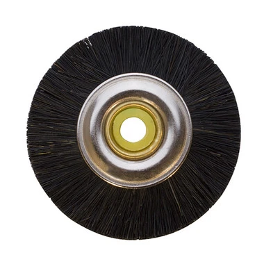 Unmounted bristle brush with steel hub; center of hub is nylon. Brush diameter measures 1-3/4″ inches and mounting hole is 3/16″ inch. Sold per brush (each).