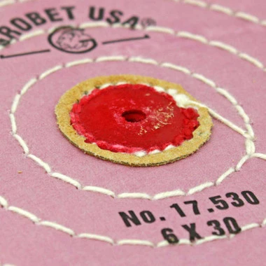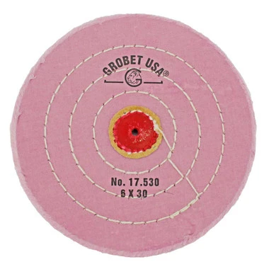 Use the best buff available for final polishing of platinum. This jewelry polishing wheel is stiff, chemically treated muslin with good cutting action and high compound retention. The berry buffs are known to provide high luster in final polishing and reduce polishing time. These stitched buffing wheels are very durable and long lasting. Use our uniquely colored Berry Buffs exclusively for your platinum work to avoid cross contamination from other metals.