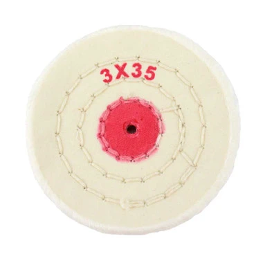 Superior quality soft-textured buffs perfect for use with rouge to produce a high finish. With combed edges for use with rouge. These buffs have 3 or more circles of concentric stitching between the arbor hole and the face. This stitching provides a firmer surface when used with cutting compounds. Can also be used for both cutting and polishing of harder metals such as platinum. Made of very fine, soft combed muslin, stitched buffs are for use with polishing compounds to produce a final, high polish. Made of fine-weave muslin with combed edges and shellac centers to hold buffs firmly on tapered spindle.
