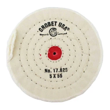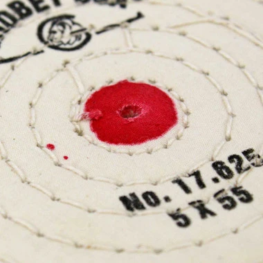 These buffs have 3 or more circles of concentric stitching between the arbor hole and the face. This stitching provides a firmer surface when used with cutting compounds. Can also be used for both cutting and polishing of harder metals such as platinum.