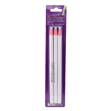 Use these positioning sticks to pick up and place flat back stones. The special resin on the tip is tacky, but not overly sticky so it wont leave a residue. Peel back the paper to expose more of the stick; sharpen with a pencil sharpener for smaller sized stones.Â