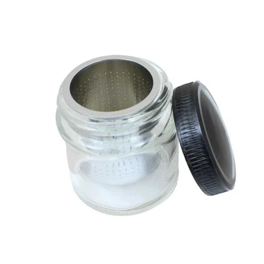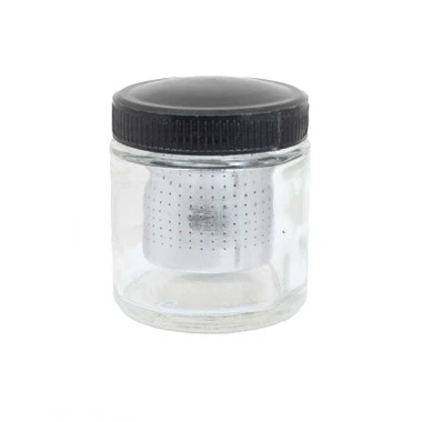 This glass cup comes with a tight screw on lid and a metal strainer with tiny perforated holes. What can you use this contraption for? This is the perfect way to wash diamonds or other loose stones with alcohol or other stone cleaners. Simply fill the jar part way with your cleaning solution, place any loose stones in the metal strainer, close the cup and swirl the liquid.