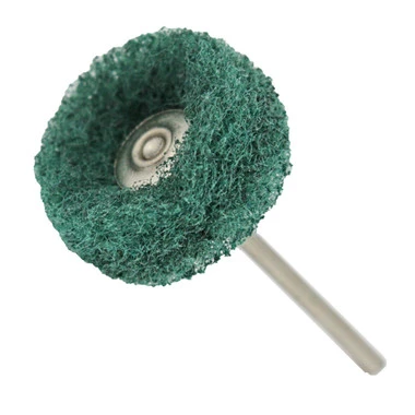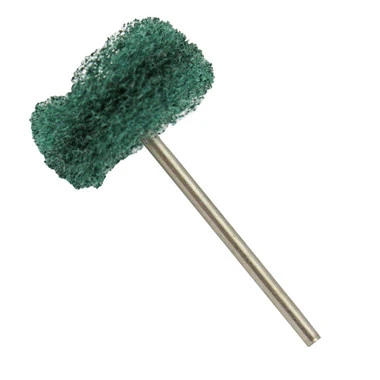 Mini satin buffs have a nylon head impregnated with abrasive grit. Use to clean and obtain matte finishes on metal and plastic surfaces.