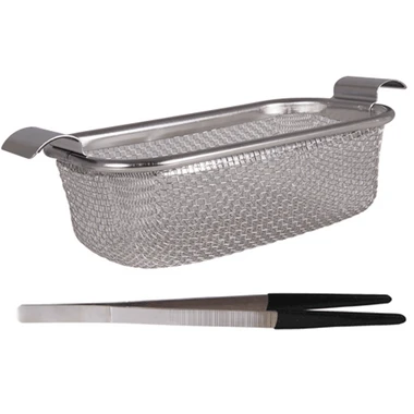 - Stainless steel tweezer and basket included