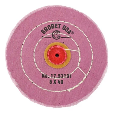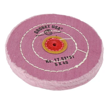 Use the best buff available for final polishing of platinum. This jewelry polishing wheel is stiff, chemically treated muslin with good cutting action and high compound retention. The berry buffs are known to provid high luster in final polishing and reduce polishing time. These stitched buffing wheels are very durable and long lasting. Use our uniquely colored Berry Buffs exclusively for your platinum work to avoid cross contamination from other metals.