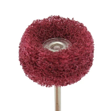 Mini satin buffs have a nylon head impregnated with abrasive grit. Use to clean and obtain matte finishes on metal and plastic surfaces.