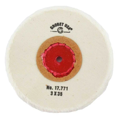 Quality textured loose buff with a leather center is perfect for use with rouge to produce a high finish.