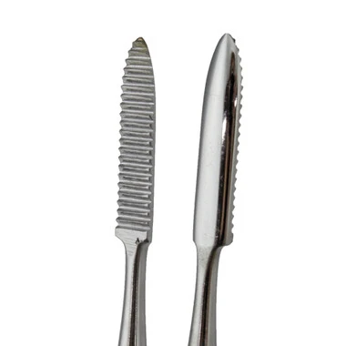 - Spatula shaped heads are serrated on one side